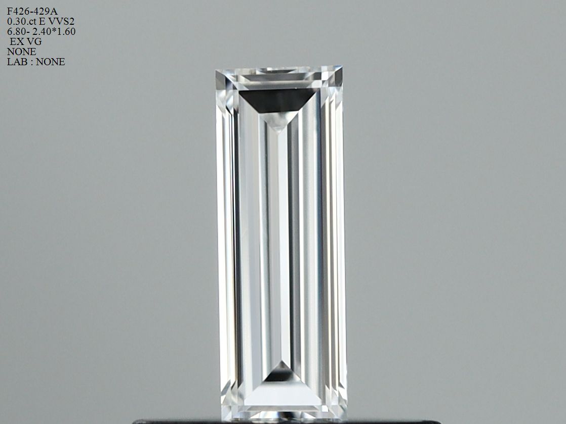 Prírodný diamant bageta, VVS2, E, 0.3ct, s certifikátom NONE