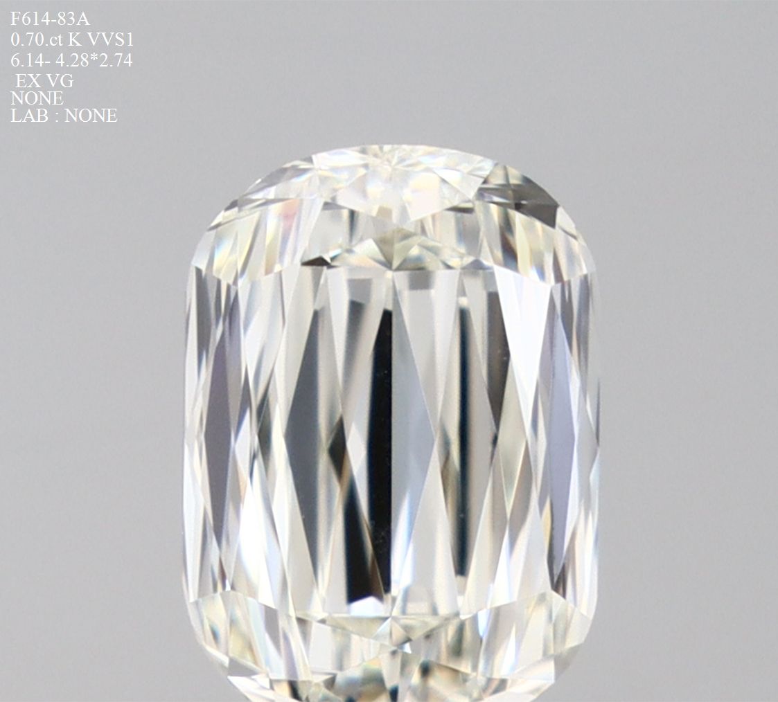 Prírodný diamant cushion, VVS1, K, 0.7ct, s certifikátom NONE