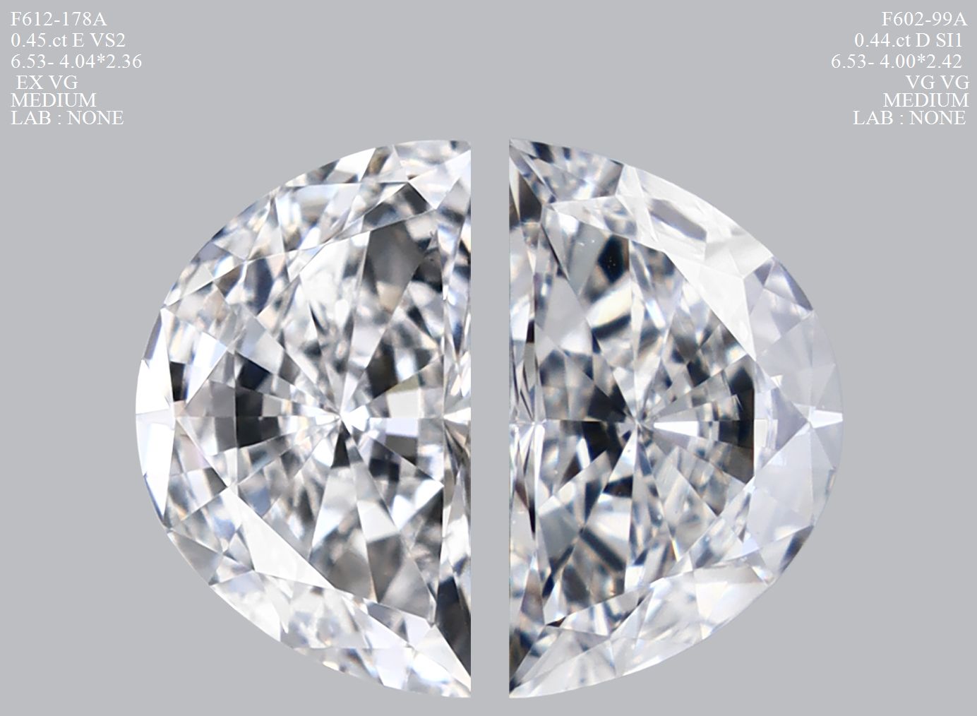 Prírodný diamant half moon, VS2, E, 0.45ct, s certifikátom NONE