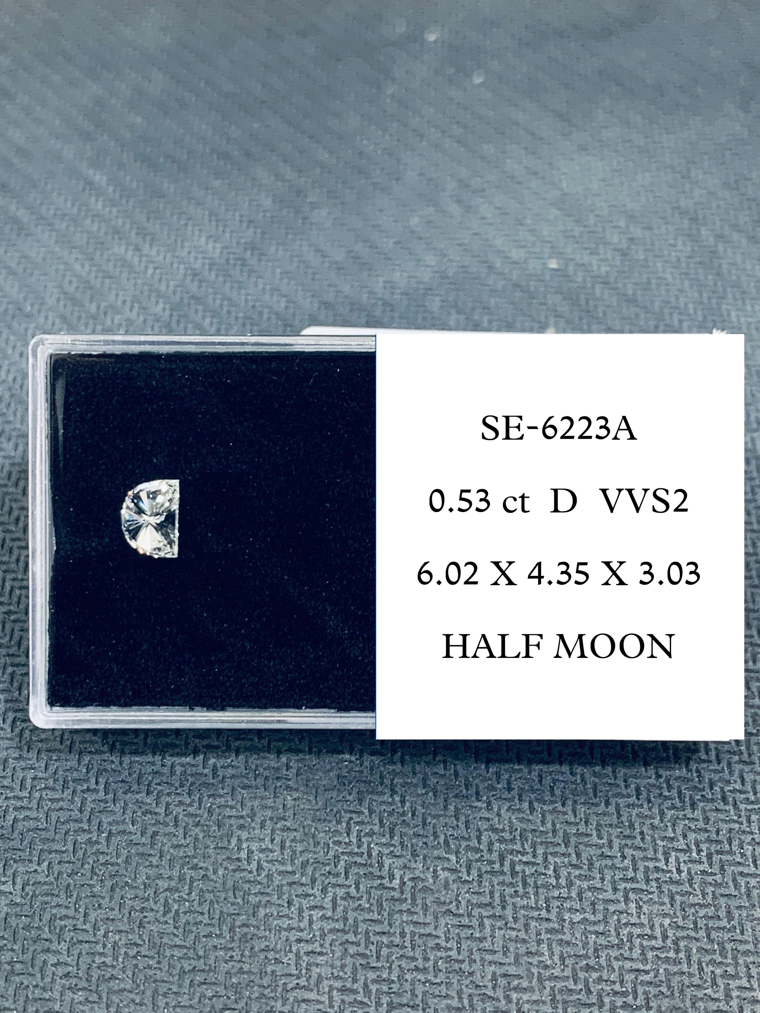 Prírodný diamant half moon, VVS2, D, 0.53ct, s certifikátom NONE