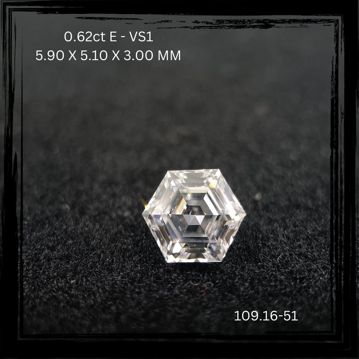 Prírodný diamant hexagonal, VS1, E, 0.62ct, s certifikátom NONE