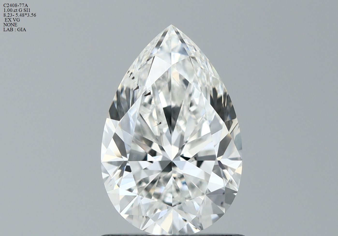 Prírodný diamant hruška, SI1, G, 1ct, s certifikátom GIA