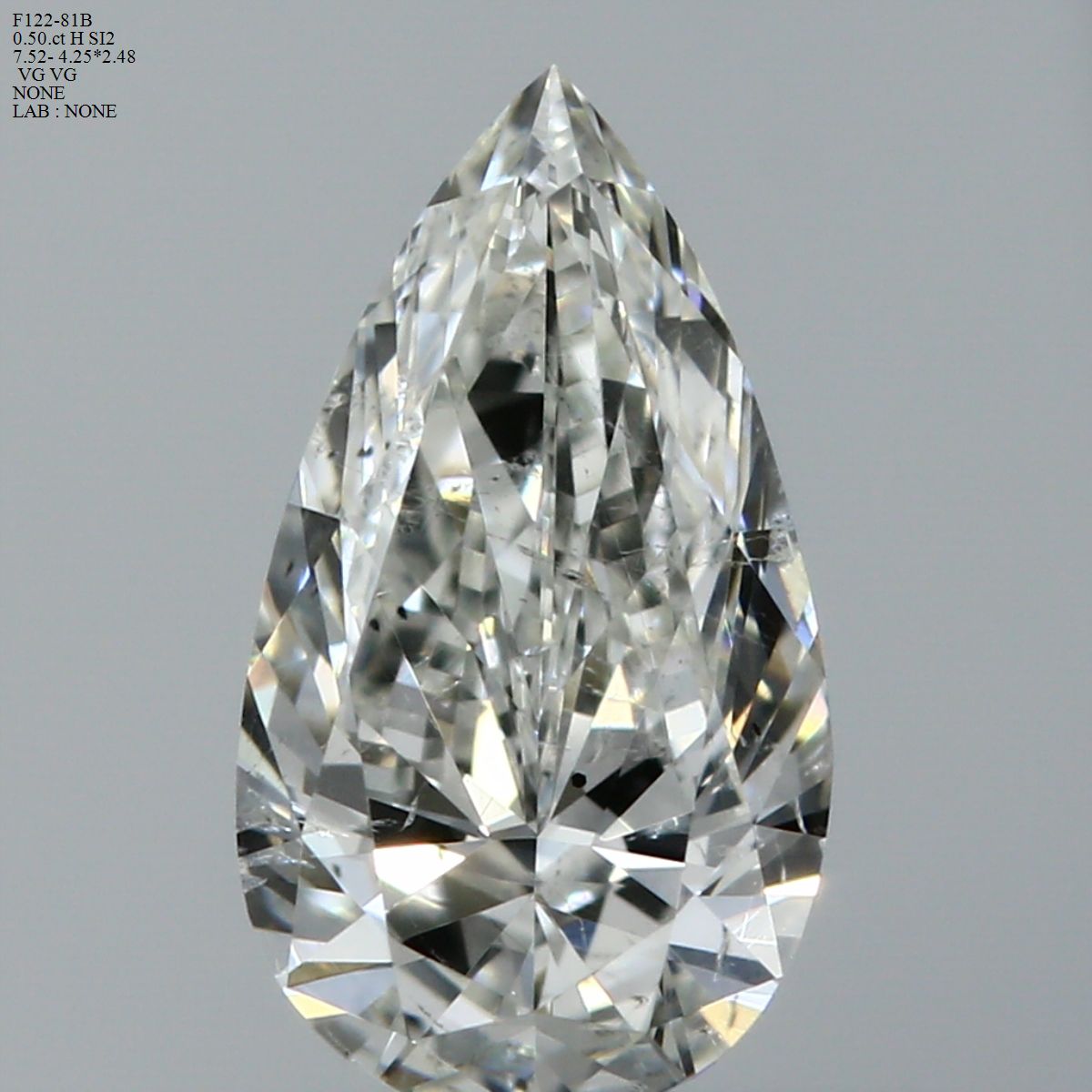Prírodný diamant hruška, SI2, H, 0.5ct, s certifikátom NONE