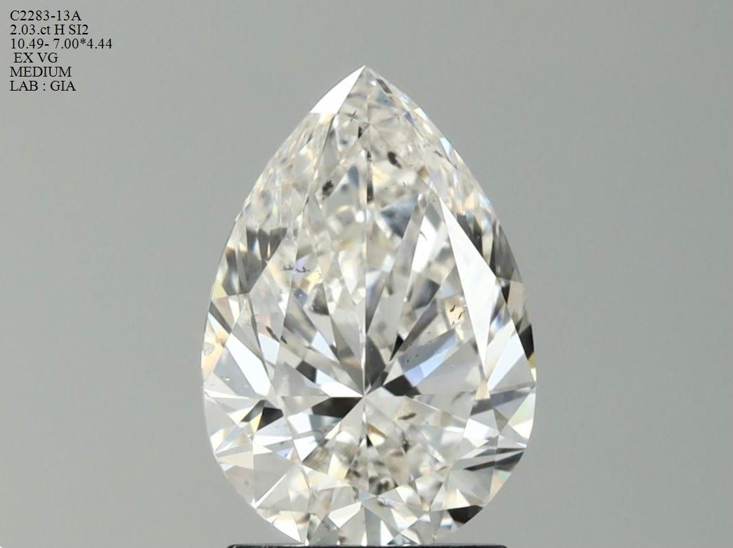 Prírodný diamant hruška, SI2, H, 2.03ct, s certifikátom GIA