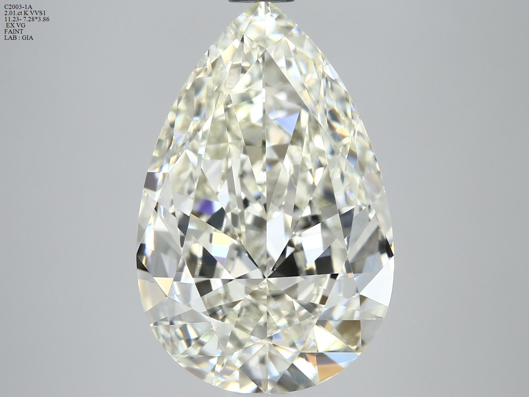 Prírodný diamant hruška, VVS1, K, 2.01ct, GIA