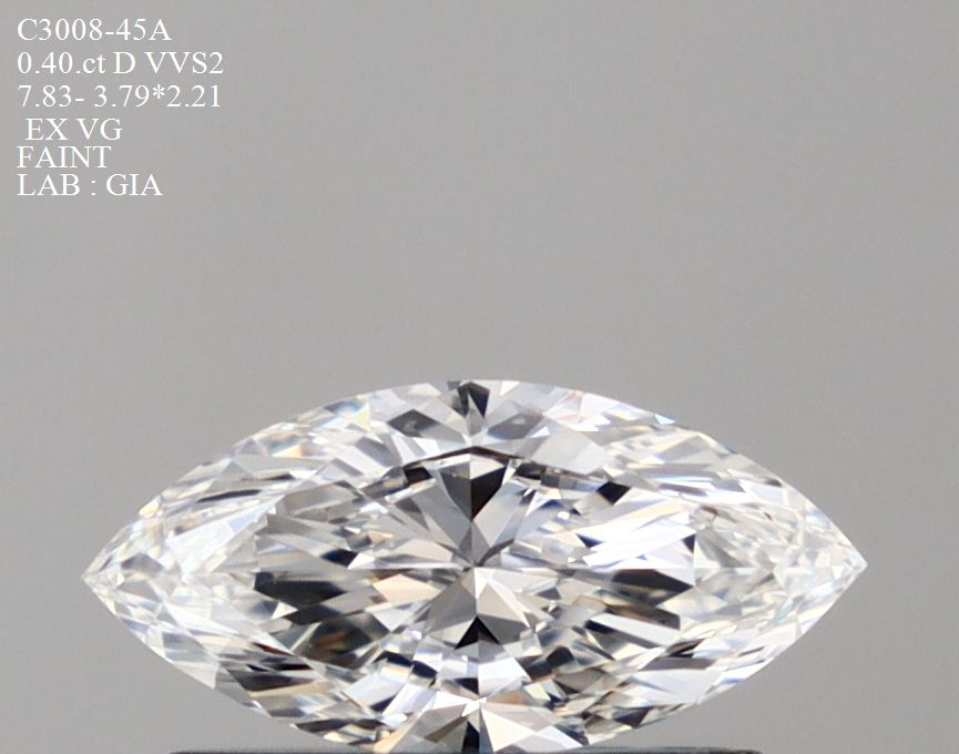 Prírodný diamant markíz, VVS2, D, 0.4ct, s certifikátom GIA