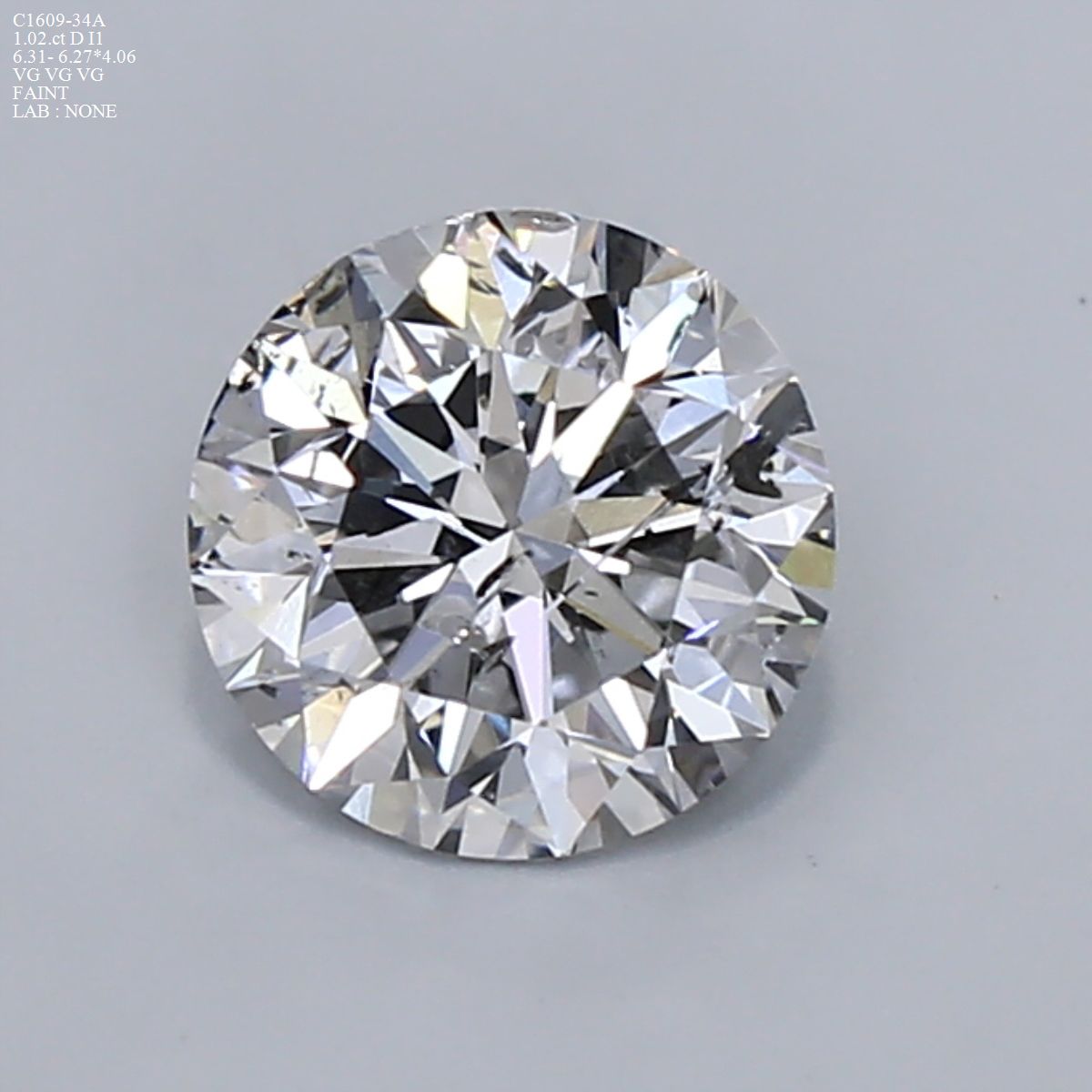Prírodný diamant okrúhly briliant, I1, D, 1.02ct, s certifikátom NONE