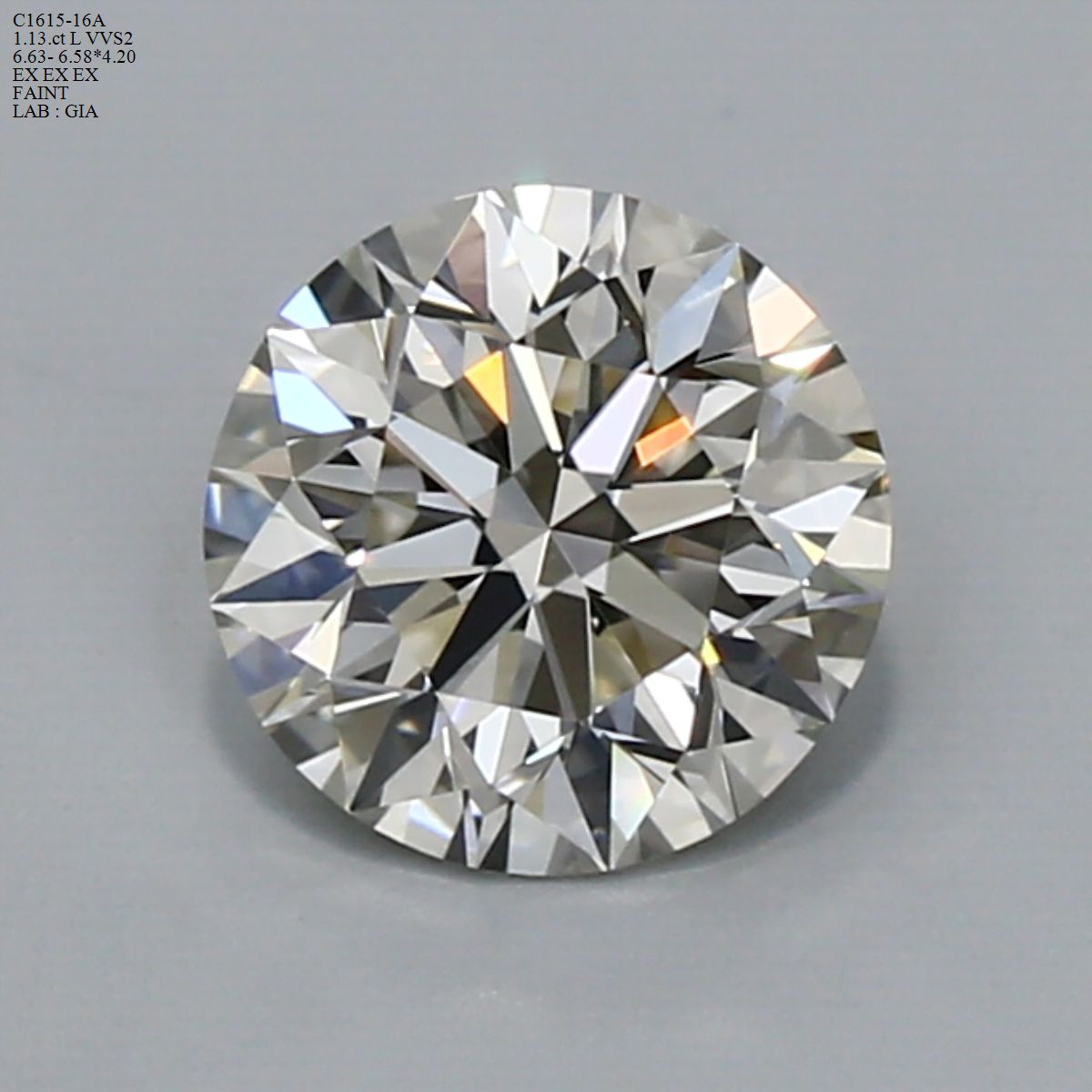 Prírodný diamant okrúhly briliant, VVS2, L, 1.13ct, GIA