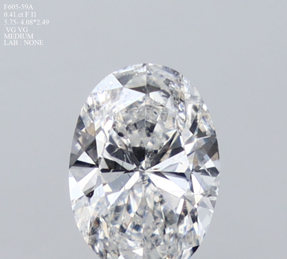 Prírodný diamant oval, I1, F, 0.41ct, s certifikátom NONE
