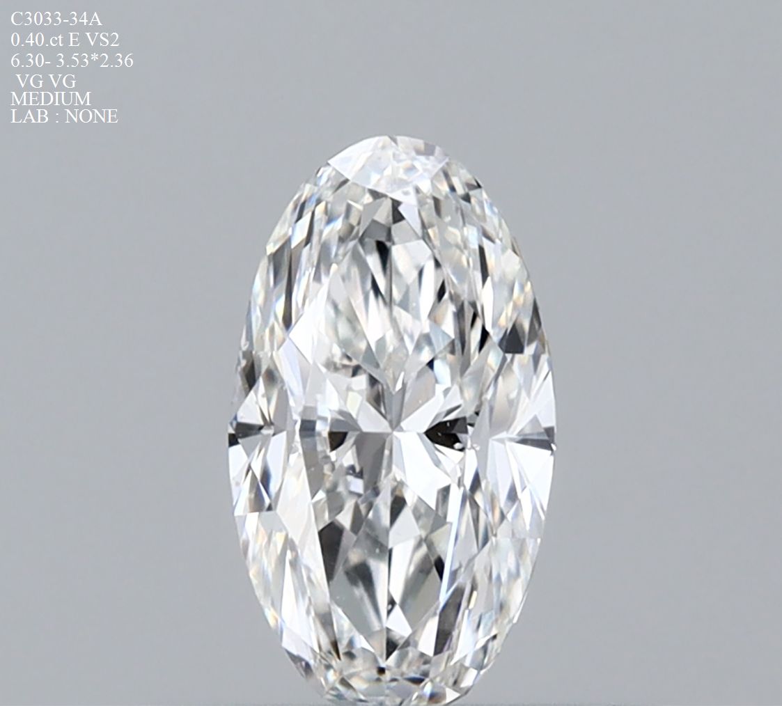 Prírodný diamant oval, VS2, E, 0.4ct, s certifikátom NONE