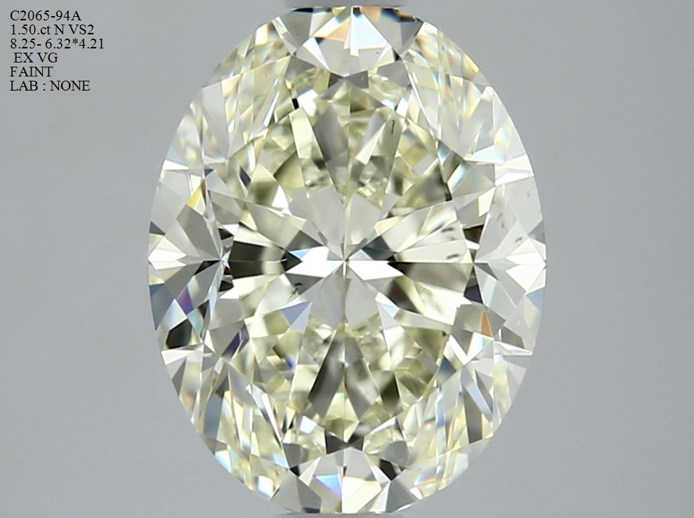 Prírodný diamant oval, VS2, N, 1.5ct, s certifikátom NONE