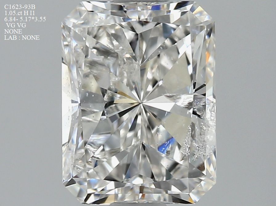 Prírodný diamant radiant, I1, H, 1.05ct, s certifikátom NONE