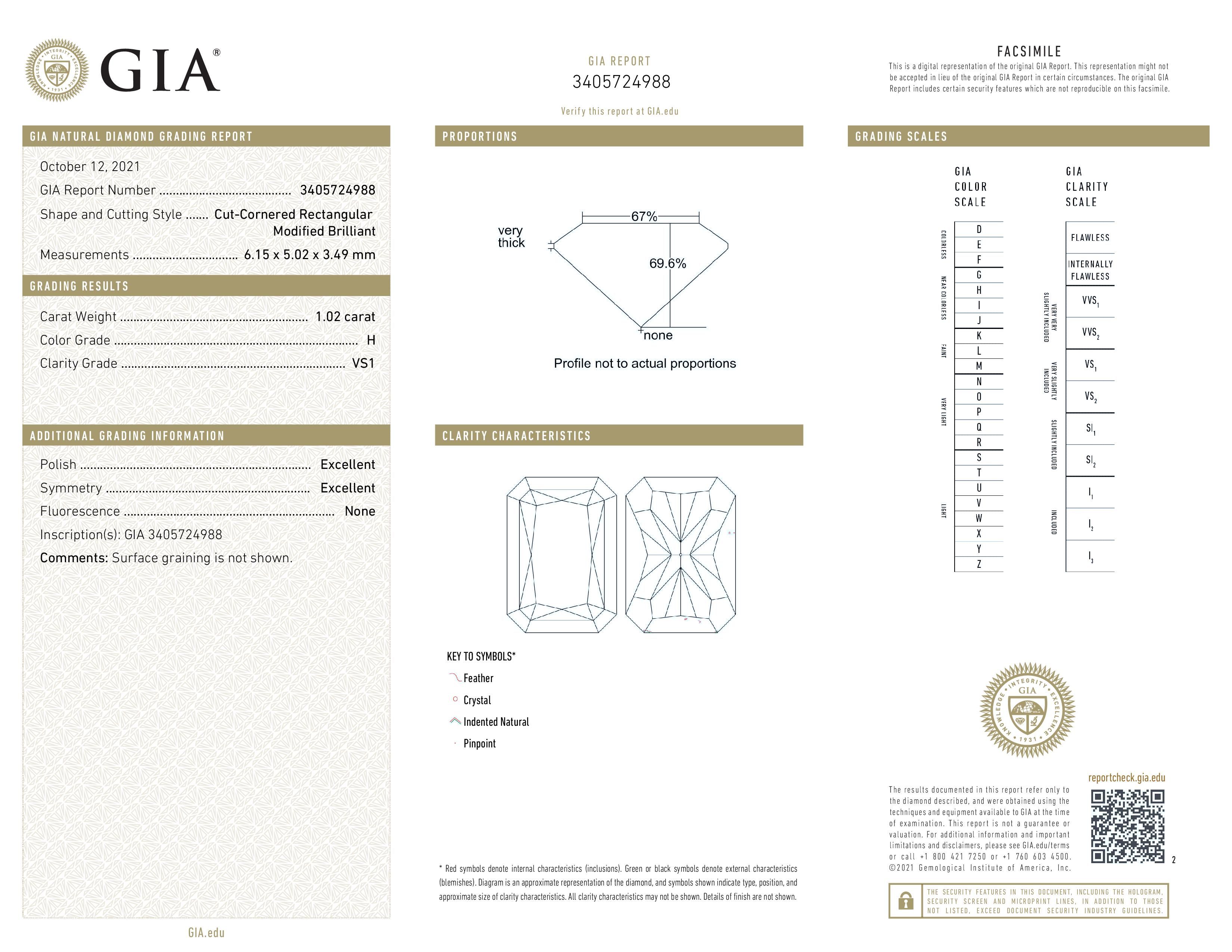 Prírodný diamant radiant, VS1, H, 1.02ct, s certifikátom GIA