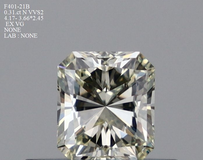 Prírodný diamant radiant, VVS2, N, 0.31ct, s certifikátom NONE