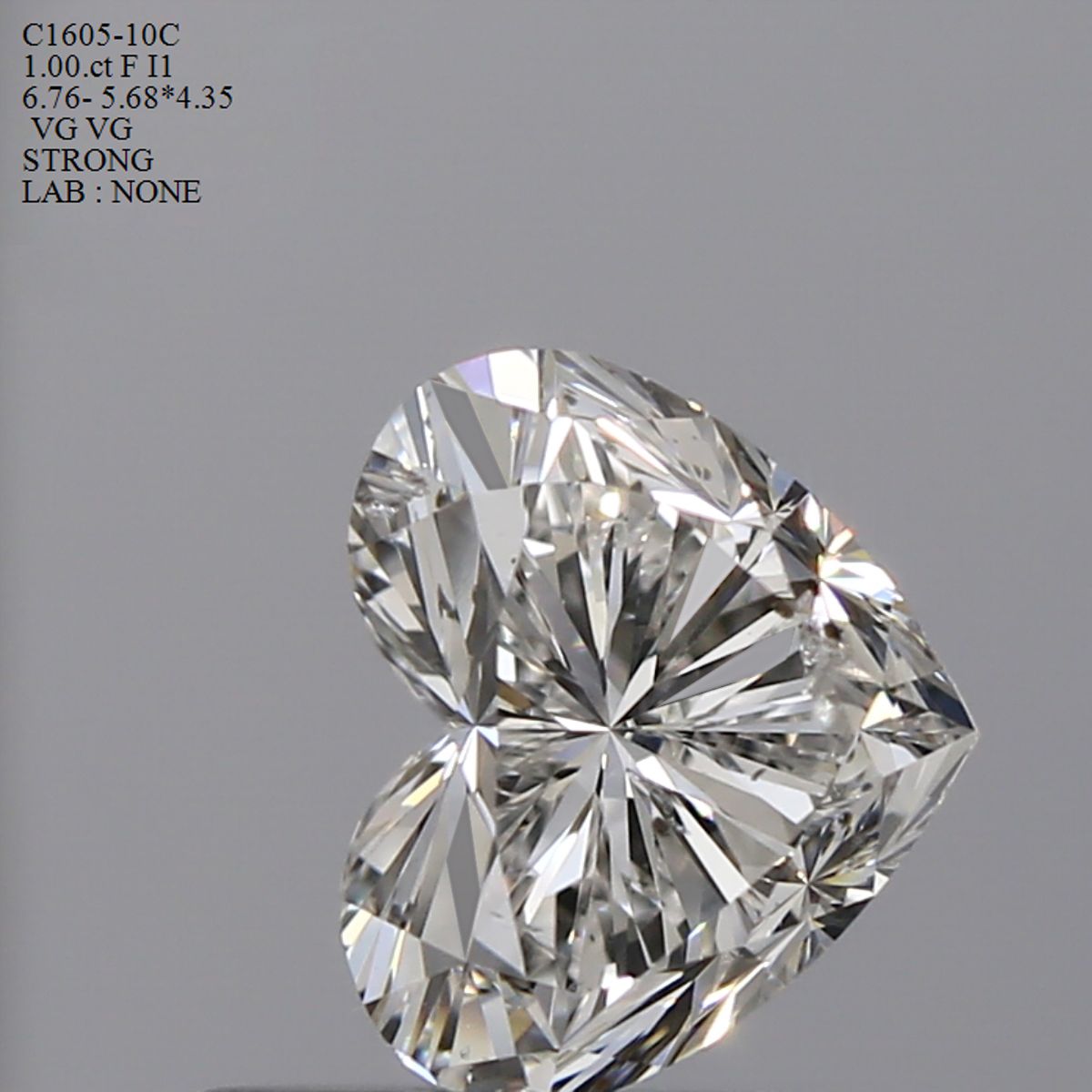 Prírodný diamant srdce, I1, F, 1ct, s certifikátom NONE