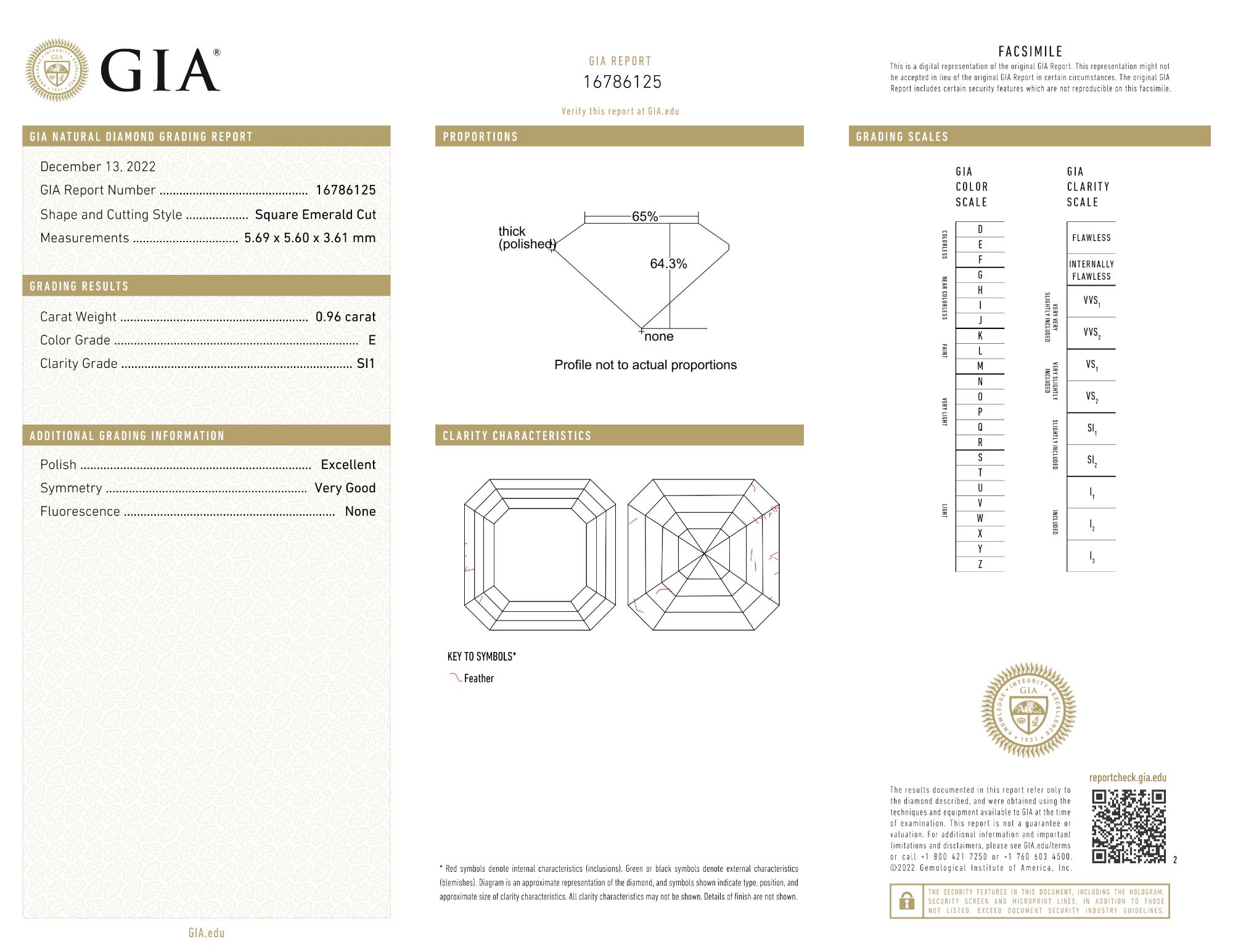 Prírodný diamant štvorcový emerald, SI1, E, 0.96ct, s certifikátom GIA