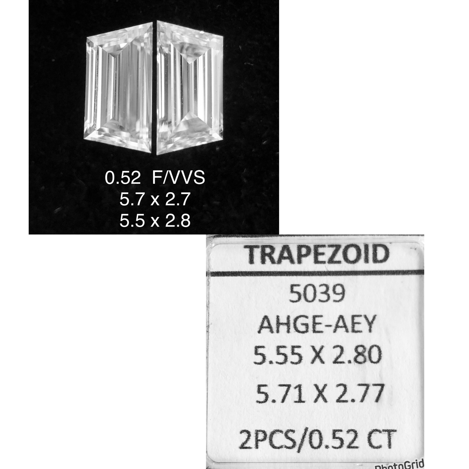 Prírodný diamant trapezoid, VVS1, F, 0.52ct, s certifikátom NONE