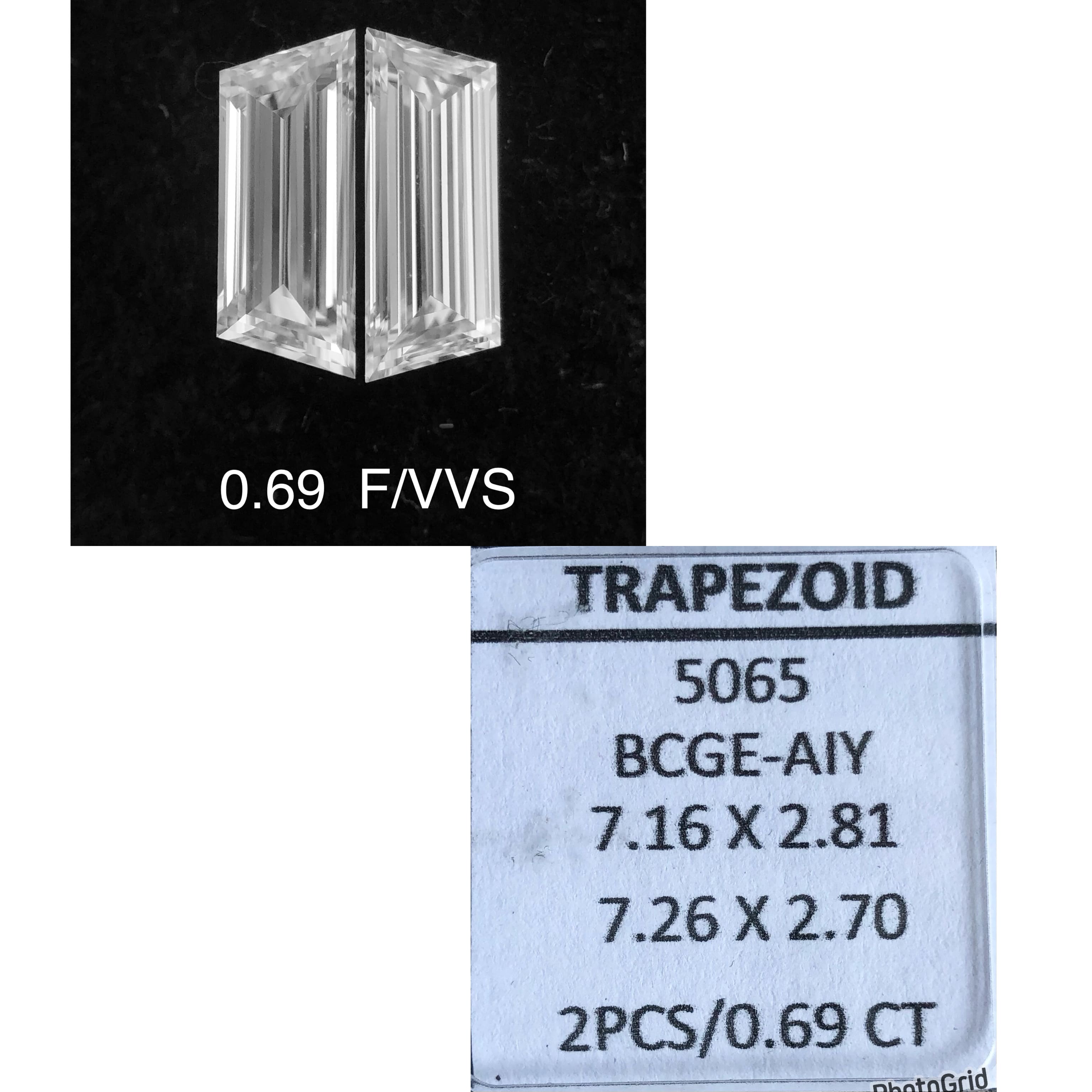 Prírodný diamant trapezoid, VVS1, F, 0.69ct, s certifikátom NONE