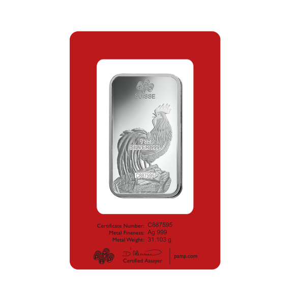 Investičná strieborná tehla PAMP Lunar Kohút 1 oz patrí medzi najprestížnejšie produkty lunárnej série renomovanej švajčiarskej rafinérie PAMP Suisse. Lunárna kolekcia je mimoriadne obľúbená medzi investormi aj zberateľmi, pretože každý rok prináša nový motív podľa čínskeho lunárneho kalendára. Znamenie Kohúta predstavuje presnosť, odvahu, sebavedomie, organizovanosť a schopnosť vedenia – hodnoty, ktoré zlaté aj strieborné zliatky s týmto motívom predurčujú na atraktívne investičné a darovacie produkty. Tehlička obsahuje 1 trojskú uncu rýdzeho striebra 999/1000, čo je najobľúbenejšia a najlikvidnejšia gramáž v segmente investičného striebra.