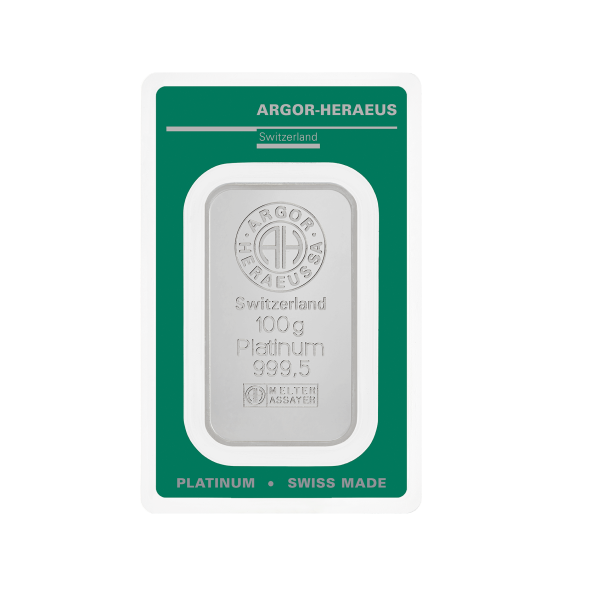 Investičná platinová tehla 100 g , Argor Heraeus SA , rýdzosť: 999,5 , razená , Švajčiarsko , blister - zaliate v ochranom plaste , rozmery: 49,7 x 28,5 x 3,5mm ,0,23 , LBMA: , Garancia výkupu: garantujeme od švajčiarskej firmy Argor Heraeus SA o hmotnosti 100 g.