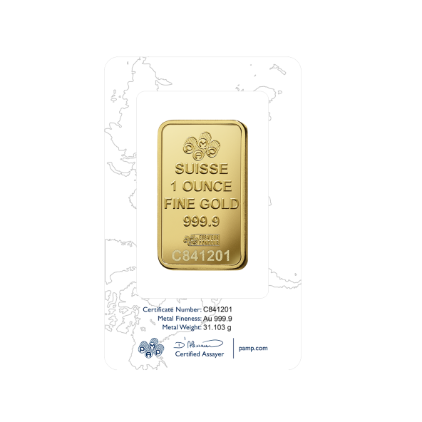 Investičná zlatá tehla 1 oz , Pamp Suisse , rýdzosť: 999,9 , razená , Švajčiarsko , blister - zaliate v ochranom plaste , rozmery: 41 x 24 x 1,66mm ,0% - oslobodené od DPH , LBMA: áno , Garancia výkupu: garantujeme od švajčiarskej firmy Pamp Suisse o hmotnosti 1 oz.
