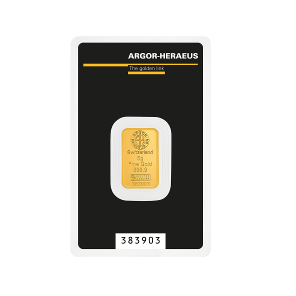Investičná zlatá tehla 5 g , Argor Heraeus SA , rýdzosť: 999,9 , razená , Švajčiarsko , blister - zaliate v ochranom plaste , rozmery: 23 x 14 x 0,8mm ,0% - oslobodené od DPH , LBMA: áno , Garancia výkupu: garantujeme od švajčiarskej firmy Argor Heraeus SA o hmotnosti 5 g.