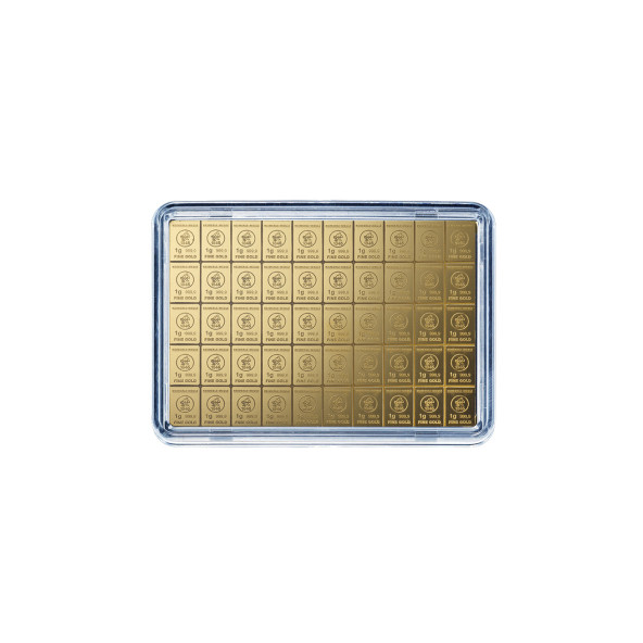 Investičná zlatá tehla 50x1 g , Heimerle & Meule , rýdzosť: 999,9 , razená , Nemecko , plastový obal , rozmery: 74 x 52 x 0,8mm ,0% - oslobodené od DPH , LBMA: áno , Garancia výkupu: garantujeme od nemeckej firmy Heimerle & Meule o hmotnosti 50 x 1 g.