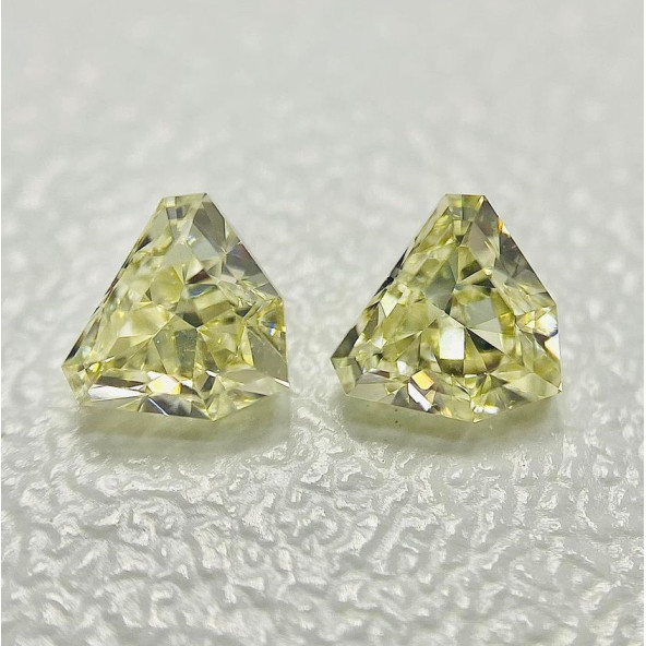 Prírodné diamanty s farbou Fancy light yellow. Váha spolu 0.54 cts. Uvedená cena je za pár. Výnimočné a unikátne kamene, ktoré sa hodia ako bočné kamene do prsteňa.